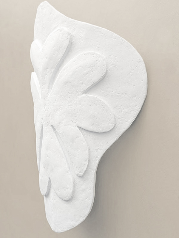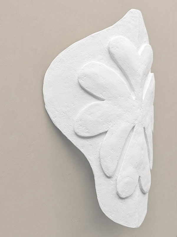 The wall light was sculpted and handcrafted in clay plaster in our studio in London. The piece is then cast in jesmonite, which is a water-based sustainable material, more durable than plaster and kind to the environment.